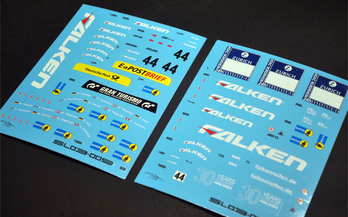 Porsche 997 GT3 Falken Decal incl. Falken stripes masking 1/24 Fujimi