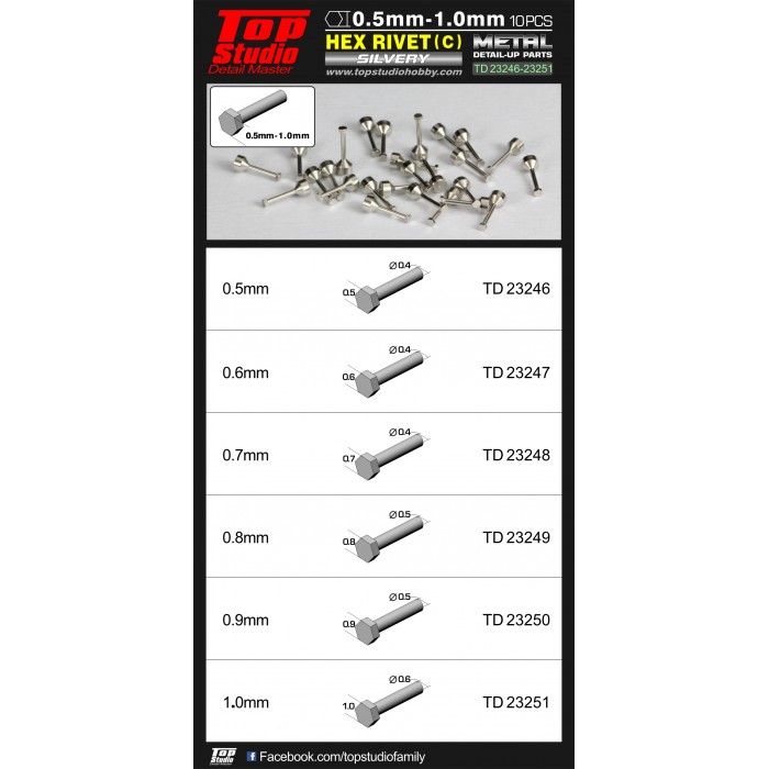 1.0mm Hex Rivets (C) Silvery